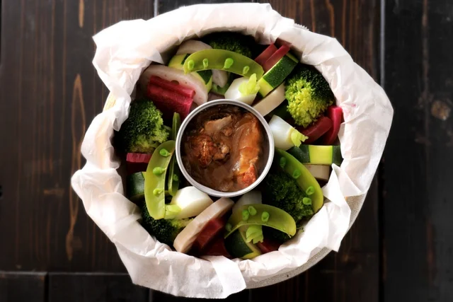 山形産「米澤豚 一番育ち」のスペアリブを、圧力鍋を使い、玉ねぎと醤油ベースのソースでほろほろに煮込みました。200gのたっぷり缶!玉ねぎの甘さが醤油で引き締まる、ごはんもお酒も進む和風仕立てです。1缶に1本は必ず骨付きのスペアリブが入っており、缶を開けた時の「缶」動が絶えません!